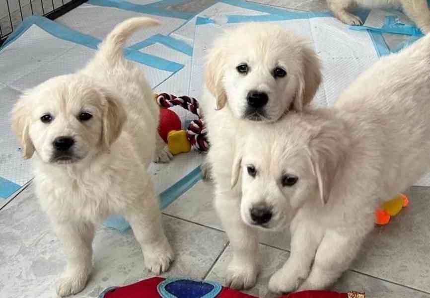 Nádherná štěňata zlatého retrívra připravená k návštěvě. Jsou dobře vycvičená a milují si hrát s dětmi a dalšími domácími mazlíčky. Jsou veterinární kontrolou a doručí se spolu s veterinárními dokumenty a veterinární knížkou. V případě zájmu mě kontaktujte s fotografií štěněte.