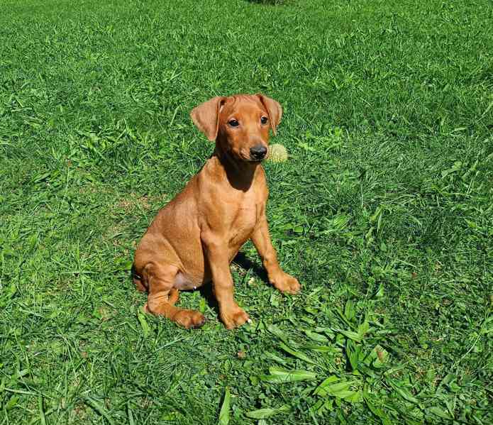Německý pinč - /střední vel.45-50cm/ Prodám červená štěňata s PP, očkovaná, očipovaná, pravidelně preventivně odčervovaná, odběr možný ihned, cena dohodou, více info po tel.721419686 na sms nereaguji