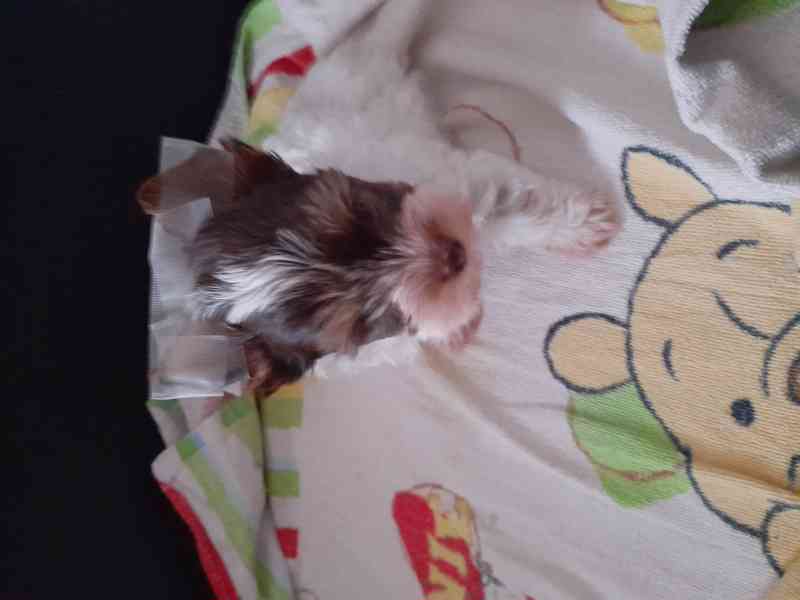 poslední pejsek jorkširský teriér birro v bílo hnědé barvě narozen10.10.2025 je zdravý a čilý. K odběru od 7.12. Má už očkování i čip a pravidelné odčerveni. Sebou si odveze granulky do začátku, hračku a kupní smlouvu. Prosím volat nebo sms pokud se nedovoláte děkuji obratem se ozvu.