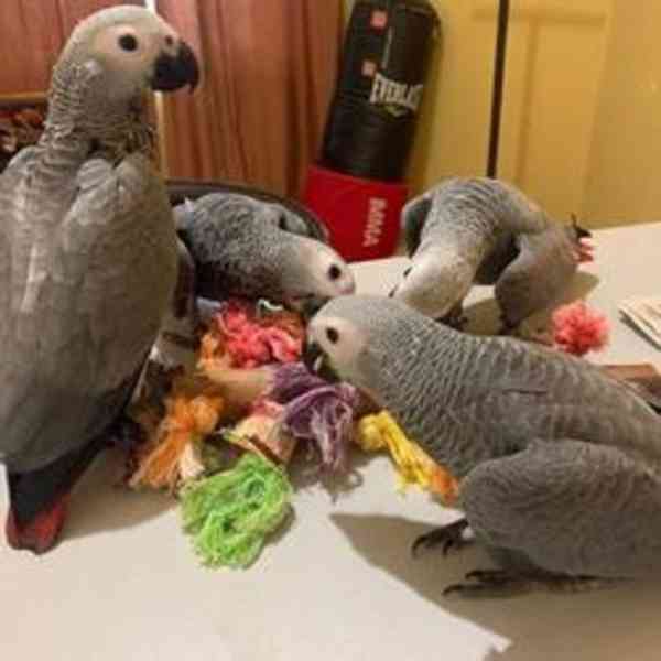 Domácí a velmi přátelští papoušci šedých na prodej do každého milujícího a starostlivého domova. Jsou odchováni doma a všichni jsou registrováni. Odchovali jsme je od vajec až do dospělosti. Tito milí papoušci šedí mají bohatou slovní zásobu a milují zpěv. Tito ptáci budou venku v kleci a připravili jsme pro ně manuál, který pomůže jejich budoucím rodičům se o ně dobře starat. Jsou velmi přátelští a budou se z nich stát perfektní mazlíčci.