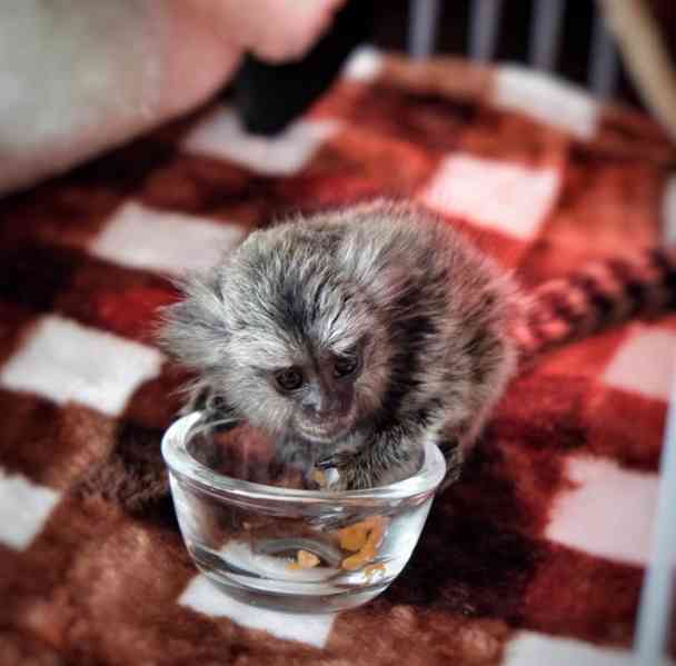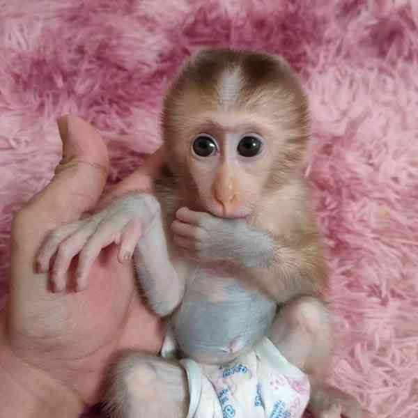 tyto opice jsou samci a samice ve věku 14 týdnů. jsou zkontrolováni veterinářem a mají všechny doklady a jsou dobré povahy. jsou stejně krásné a budou se hodit do vaší domácnosti. prosím kontaktujte ASAP pro více informací