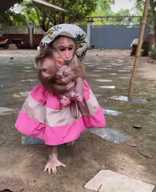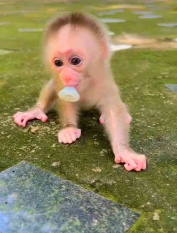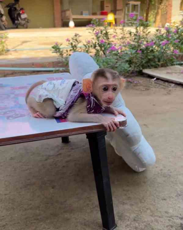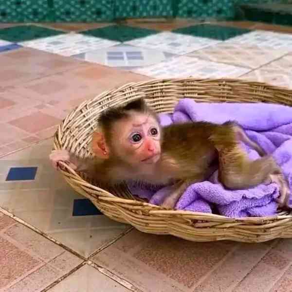 Toto mládě opice, vychované s něhou a každodenní interakcí, je klidné, mazlivé a připravené stát se něčím malým pokladem.