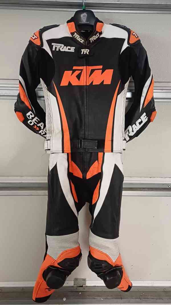 Kožená 2 dílná sportovní kombinéza od české značky TTRace v atraktivním designu KTM ve velikosti S vhodná na štíhlou drobnější postavu cca. váha 52/60 kg, výška 168/174cm. Je málo použitá a celkově ve velmi dobrém stavu.