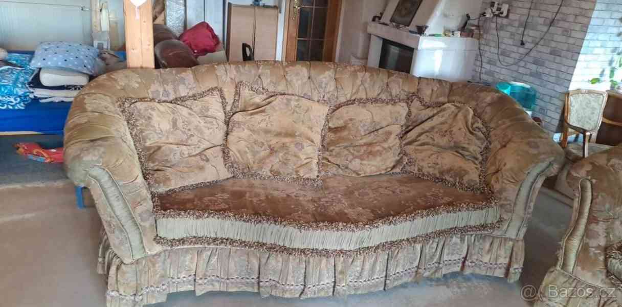 Sedací souprava 2 kusy včetně polštářů,Rozměry D260xH120xV100cm, 210x110x100cm.Cena 990kč za 1 kus.K vyzvednutí v Žatci.606 247 137