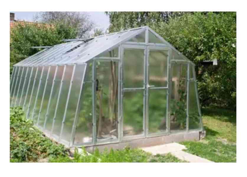 Prodám starší masivní železnou konstrukci skleníku bez zasklení, šířka 3m, délka 6m, tvar odpovídá skleníku na obrázku, obrázek je pouze ilustrační