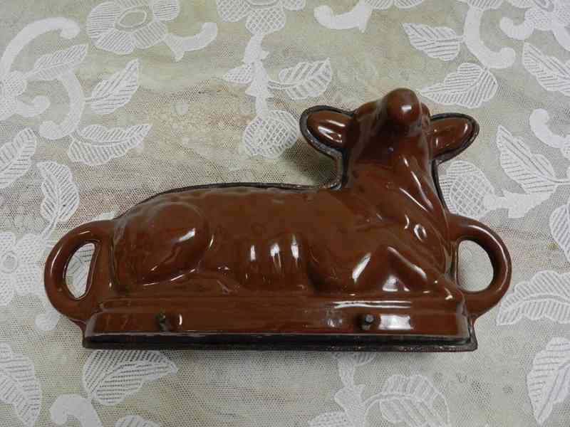 Krásná stará litinová forma na pečení, Beránek, barva hnědá, vysoká zachovalost.