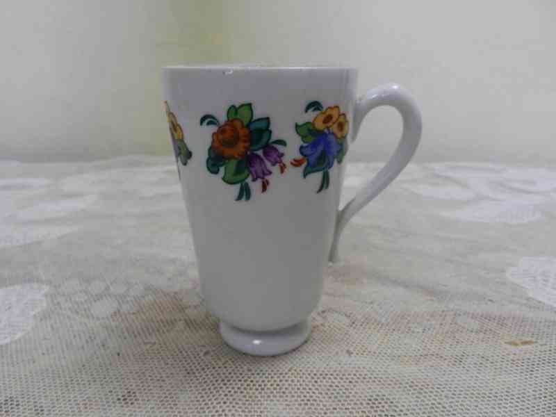 Zajímavý ručně malovaný lázeňský pohárek, Značeno Chodov, Signováno, lidová malírna, 1 třetina 20 stol.