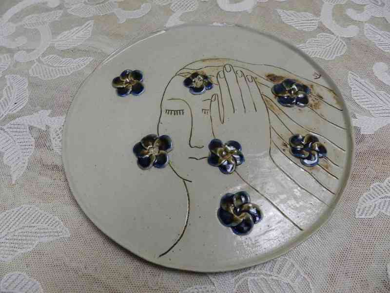 Keramický Autorský Tác na nožičkách, Dívka, značeno štítkem Dílo, Signatura, 2 pol. 20 stol.
