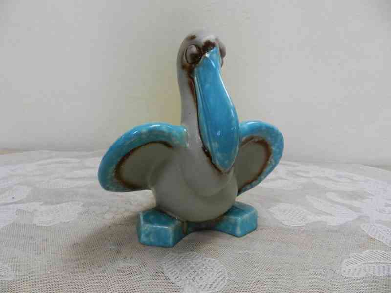 Vzácná Art Deco soška Pelikána, glazovaná keramika - Ditmar Urbach, Czechoslovakia, 1 pol. 20 stol.