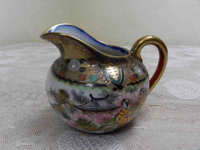 Luxusní porcelánová Mléčenka s Gejšami, velmi kvalitní zpracování porcelánu, bohaté zdobení a zlacení - Japonsko, Satsuma, období Meidži, značeno, 19/20 stol.