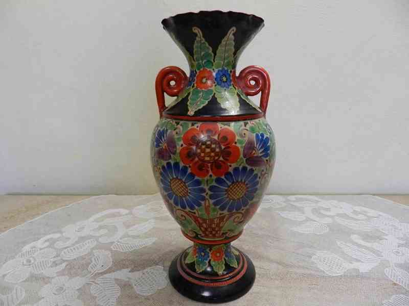 Krásná pestře malovaná keramická Váza ve tvaru amfory - Signováno, datováno 1941.
