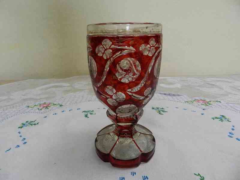 Krásná masivní bohatě zdobená rubínová Sklenice Biedermeier - Čechy, 1 pol. 19 stol.