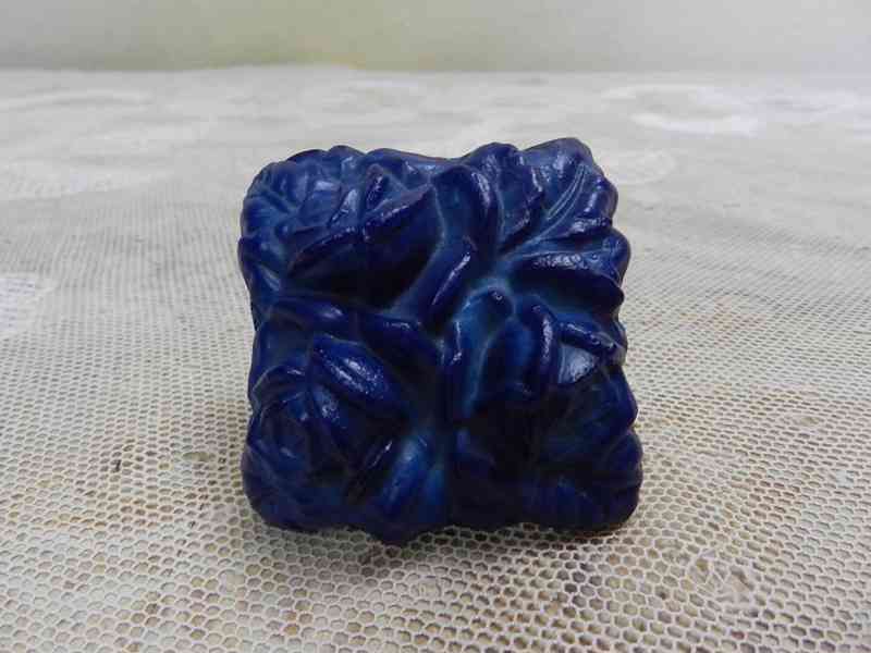 Art Deco modrá zátka od karafy, motivy růží.