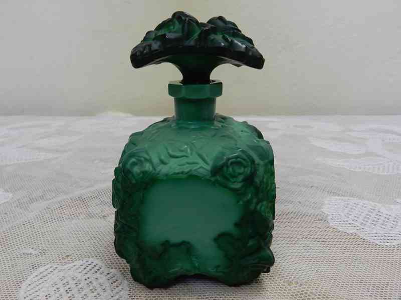 Krásná Art Deco Karafa, reliéf, malachitové sklo - Ingrid, Schlevogt, kolem 1 třetiny 20 stol.