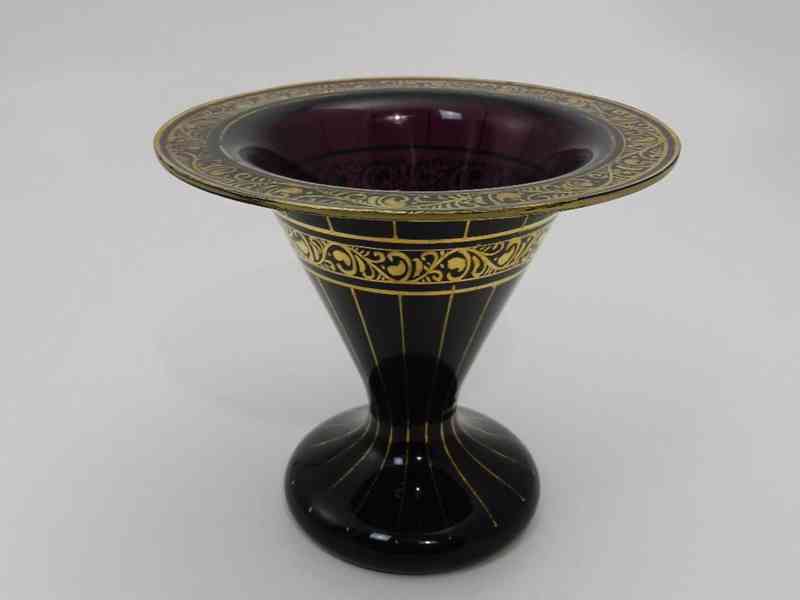 Zlacená fialová Art Deco Váza - 1 třetina 20 stol, Kamenický Šenov?