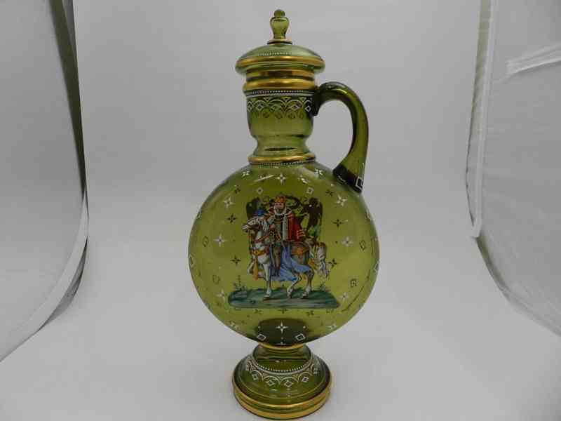 Luxusní novorenesanční obří Džbán s poklopem, lesní sklo, ruční malba - poslední čtvrtina 19 stol, počátek 20 stol. Severní Čechy.