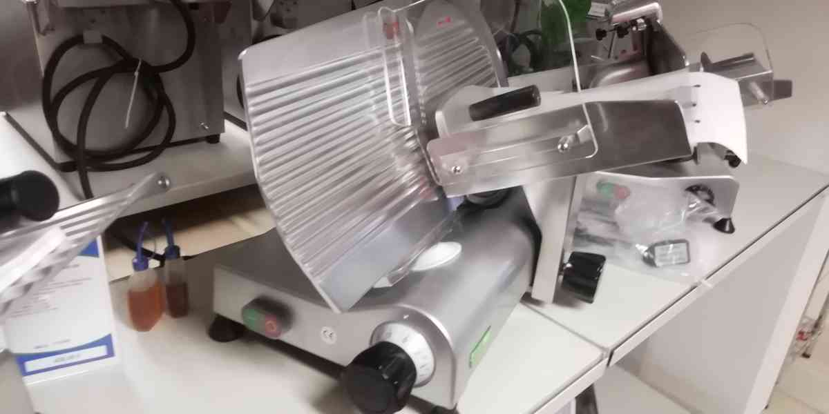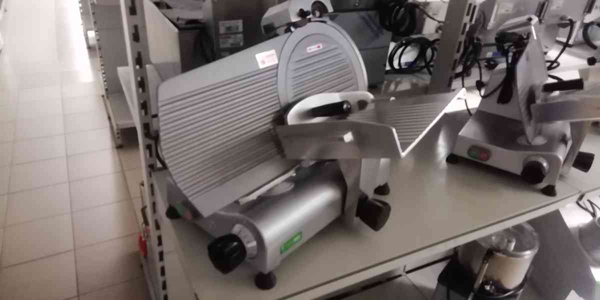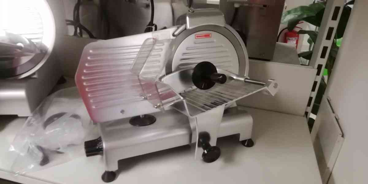 Nářezový stroj s pr. kotouče 250 mm. Rozměr ŠxHxV: 520x460x380 mm; výkon 0,15 kW; síla plátků 0 – 12 mm; váha 16 Kg; nůž uložený na šikmo, celkový popis a více typů na vyžádání. Cena: 10.490,- Kč vč. DPH + doprava. Nůž s teflonovým povrchem za akční cenu 999,- Kč. (kód: A722250)