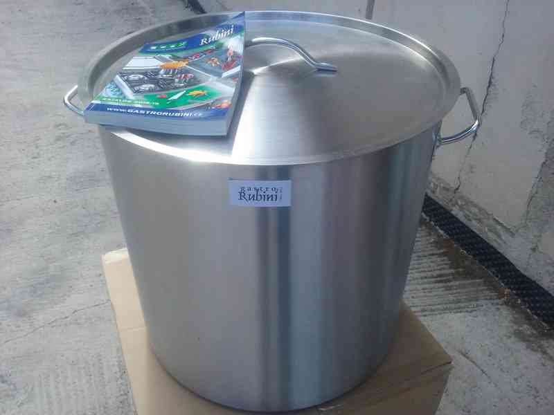 Nerezový hrnec s trojitým dnem typ EKO obsah 98 litrů vč. poklice. Vhodné na všechny typy sporáků (plyn, elektřina, indukce), pevné nýtované úchyty. V nabídce máme 11 různých typů od 9 do 98 litrů, zašleme na vyžádání. Rozměr pr. 50 cm, výška 50 cm, obsah 98,2 litru. Cena včetně poklice: 6.350,- Kč vč. DPH + doprava. (kód: S011505)