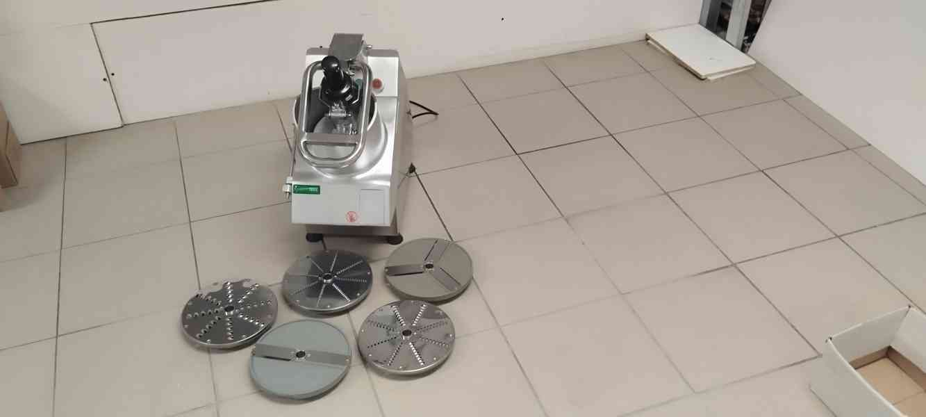 Kráječ - zelenina, ovoce, sýry, pro restaurace, kebab, pizzerie atd.., předváděcí snížená cena. Velký otvor, vhodné na krájení zelí, brambory, cibule, okurky, paprika, ovoce, sýr. Tělo z leštěného hliníku, otvor průměr 16,5 cm; 5 kotoučů v balení: 3 x strouhání; 2 x krájení. Rozměr: 325x535x655 mm, výkon 0,75 kW, 230 V; váha 25 Kg. Bazarová cena: 18.490,- Kč + doprava (kód: A713265-B)