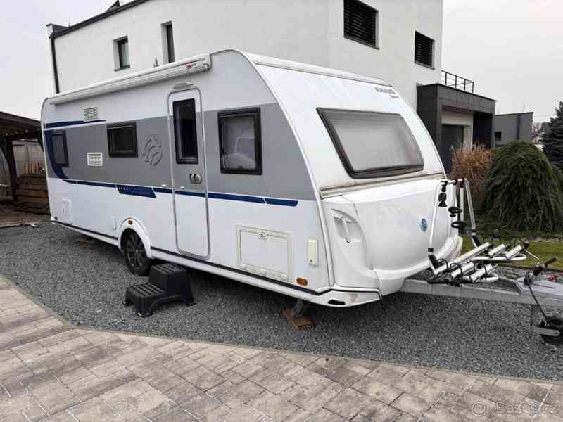 --- REZERVOVÁNO ---. Obytný přívěs karavan v nejvyšší Švédské top kvalitě, rok 2012, čistý a suchý v krásném stavu po druhém majiteli. Prostorný luxusní zimní karavan(šíře 250 cm) je vybaven centrálním topením Alde s radiátory po celém karavanu, vodním podlahovým topením, stropní klimatizací Truma Aventa, automat el. pojezdy zn. Kronings s dálk. ovládáním+bat+nab(baterie je zapojená do systému), ATC elektronický stabilizační systém, systém Duocontrol pro 2 plyn láhve a zabezpečovacím systémem Nortronic. Pohodlné spaní pro 4 osoby, v přední části je velké sezení do "U" rozložitelné na spaní pro 2 osoby a výsuvný vyhřívaný box na lyže. V zadní části je otočné wc a koupelna a samostatný plnohodnotný sprchový kout, vše je oddělitelné dveřmi, ložnice s velkou fr. postelí s polohovatelnými rošty oddělitelná posuvnou stěnou, v chodbičce je kuchyňský nerezový dřez s teplou vodou, trojhořák se skleněným krytem, velká vyvýšená lednice Dometic(230/12V/gas), digestoř, vestavná plyn trouba, digi TV+anténa Tertec vč. rozvodů po karavanu+výklopný TV držák a TV Philips, pevná nádrž na vodu (60L), všechna okna jsou vsazená, tónovaná a dvojitá včetně sítěk a termo rolet, velké střešní okno Heki s osvětlením také se síťkou a termo roletou nad kuchyní a malé střešní okno v koupelně, vstupní dveře se sítí proti hmyzu v celé výšce, rádio/CD JVC+repro+anténa, spousta úložného prostoru a zásuvek, multifunkční panel Cabby, digi ukazatel stavu nabití baterie a stavu nádrže na vodu, intimní led osvětlení, plast kryt oje, ochranný kryt oje, Alu kola, GAS alarm, security Alarm, nádrž na šedou vodu, venkovní vývod plynu pro gril, kompletní kabeláž vč. dlouhé prodlužky, schůdky, venkovní el.+anténní zásuvka, rezervní kolo na podvozku,, ALU kola, pneu "15C" 2022, každou zimu parkováno v hale. Kompletní předstan Isabella o hloubce 2,5m s lehkou uhlíkovou konstrukcí+podlaha vč. krytů kol. Nájezdová brzda se stabilizátorem. Dva klíče, veškeré manuály a kompletní dokumentace.
