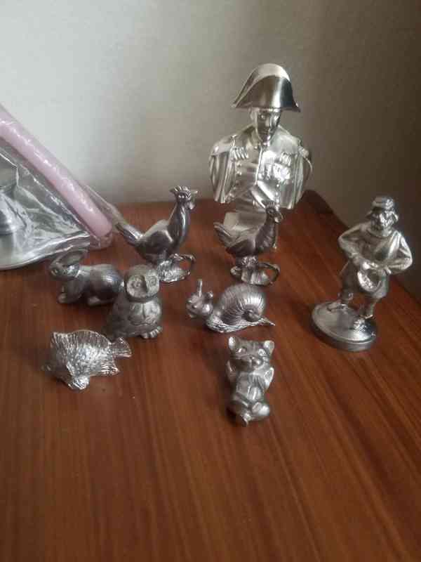 Prodám, i jednotlivě, sbírku zcela nových cínových figurek zvířat - dvouhrbý velbloud, koně, prase, různí psi, lev, ovce, zajíc, kohout a slepice, sova, šnek, kočka, ryba a králík a také cínovou bystu Napoleona a figurku chuďase (plný růst). Figurky zvířat po 120,- Kč, figurka Napoleona za 250,- Kč, figurka Chuďase za 150,- Kč. Vše je v perfektním stavu, nepoškozené. Osobní předání na Praze 3, nebo zaslání přes Zásilkovnu či Balíkovnu. Volejte 770 630 523, nebo pište na morgiana007@gmail.com