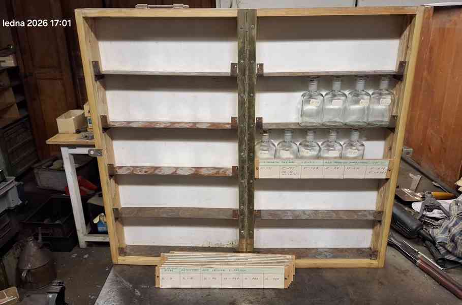 Měl jsem to již posílat tak je to rozebrané, ale vše je k dispizici. Lišty na popisy, šroubky, všechny lahvičky.