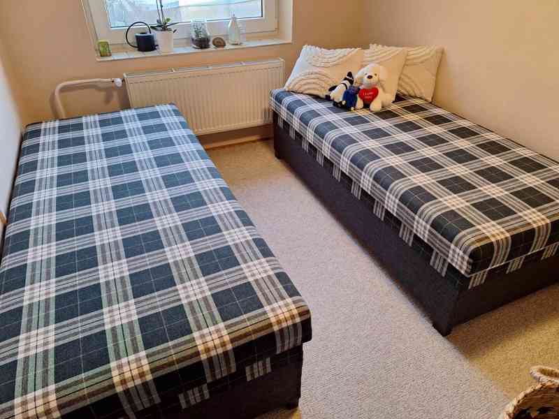 Prodám dvě celočalouněné válendy s úložným prostorek v bezvadném stavu o rozměrech d200 š90 v56 cm.Málo používané z pokoje pro hosty. cena 1.500,-Kč/ks.pouze osobní odběr.