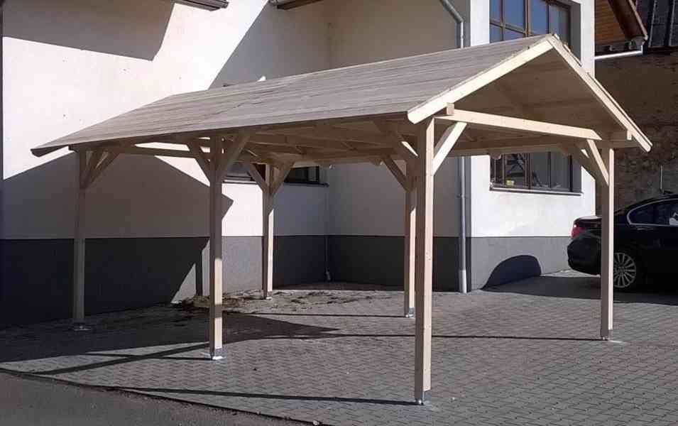 Prodám garážové stání ze smrkového dřeva. Konstrukce je hoblovaná. Bez povrchové úpravy. Rozměry : šířka: 3,3m. průjezdná výška: 2.3m. délka: 5,6m. Rozměr střechy : délka 6m , šířka 4,3m Možnost dopravy, montáže. (Bez deskového záklopu)