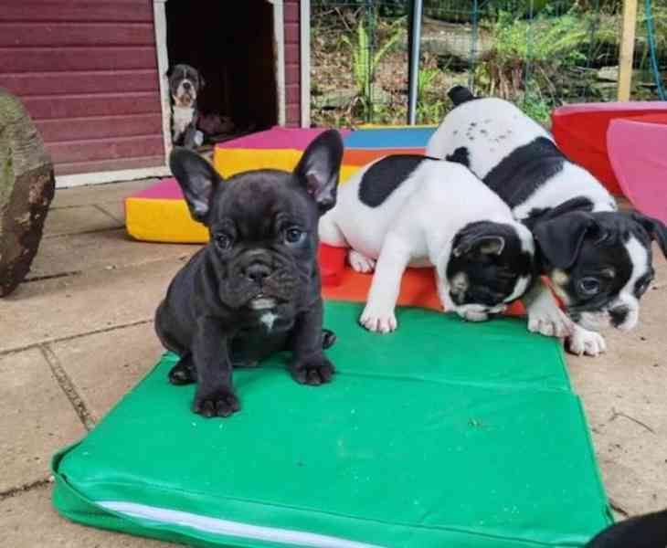 Dobre vycvicená štenata francouzského buldocka. Jsou velmi dobre socializovaní, jsou zvyklí na deti i na všechny bežné zvuky domácnosti a dokonce je vzali do auta, aby si zvykli na cestování.