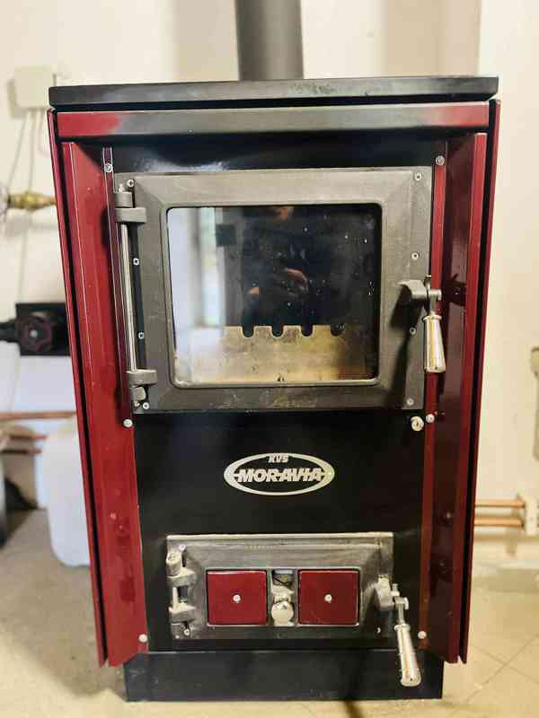 Kamna jsou pouze 2 měsíce stará. Velký výkon, moderní design v rustikálním stylu. Rozměrné topeniště pro palivové dřevo délky do 350 mm a průměru 230 mm. Výměník zabudovaný v topeništi zaručuje jeho dobrou funkčnost. Prosklená dvířka topeniště pro vizuální kontrolu sptřeby paliva. Napojení na komín z plotny o průměru 120 mm. Pohodlná regulace toku spalin a výkonu. Kamna si získala již řadu zákazníků, kteří oceňují především jejich vzhled.