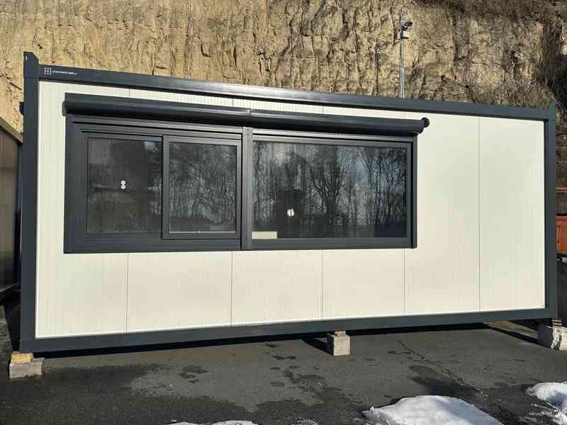 Cena: od 99 000,- CZK bez DPH (3x2,4m v bílém dekoru panelu, 1x výdejní okno, 1x dveře, kompletní elektroinstalace)