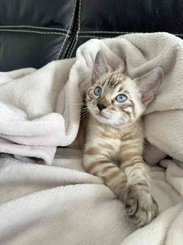Bengálský kocourek hledá nový domov. Je čipovaný, očkovaný, odčervený, mazlivý a předoucí. S výbavičkou a kupní smlouvou.