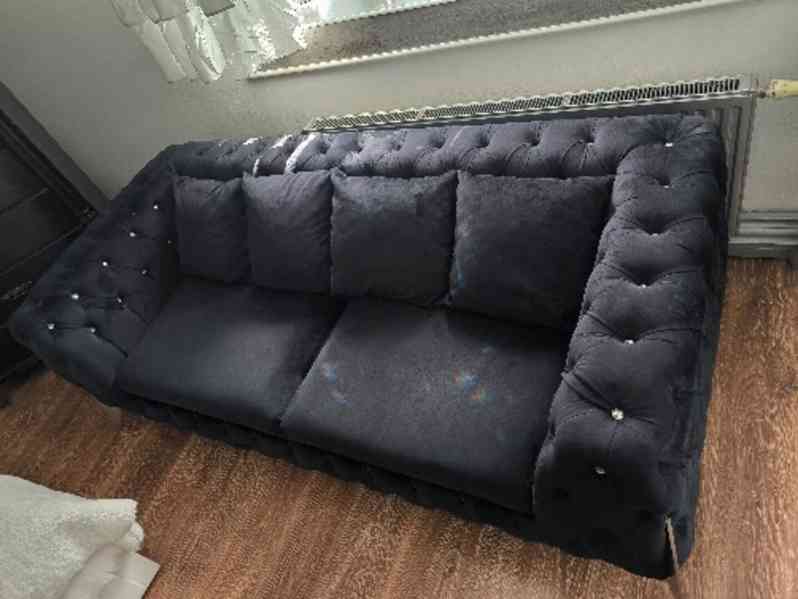 – soubor nábytku - komoda tmavá, pohovka tmavá, konferenční stolek, židle 3 ks a to nejvyšší učiněné nabídce.