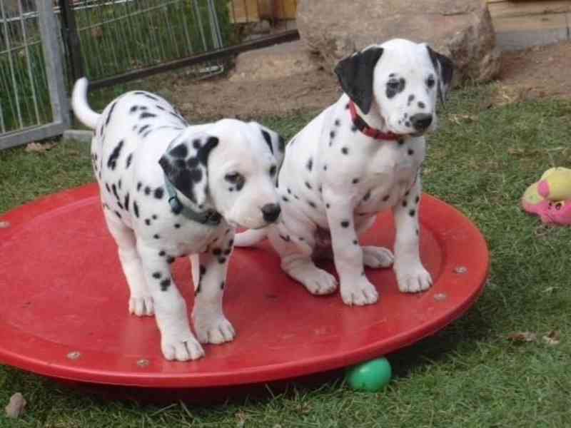 Krásní, vynikající štěňata dalmatinů, kluk a fenka, připraveni do jakéhokoli milujícího a starostlivého domova. Všechna jsou očkována. Jsou naučená na nočník a chodit do domu a mají všechny potřebné dokumenty. Nabízím je za velmi nízkou cenu, takže pokud máte zájem, dejte mi vědět.