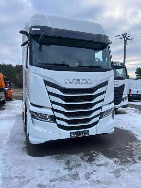 Prodám nové vozidlo IVECO AS440S50T/P tahač, motor EURO VI E, výkon 500 PS, převodovka TRAXON II - 12-rychlostní robotizovaná, brzdy kotoučové, nápravy 2 4x2, barva bílá, klíče k vozidlu s imobilizérem, asistent rozjezdu do kopce (HILL HOLDER), AEBS, ESP, digitální tachograf, tempomat, elektricky otevírané střešní okno, ocelové disky, integrovaný hydraulický retardér, lůžko spodní 1-dílné se sítí, polohovatelné, vnější sluneční clona, sklopný stolek před spolujezdcem, horní lůžko komfortní, textilní otočné vyhřívané sedadlo spolujezdce na vzduchu, chladnička, klimatizace, věnec volantu potažený kůží, odpružení kabiny na vzduchu, rolety pro boční okna, luxusní textilní klimatizované sedadlo řidiče odpružené vzduchem, full led hlavní světlomety, zadní světla s led diodami, přední světlomety do mlhy s funkcí přisvětlování do zatáčky, digitální zpětná zrcátka.