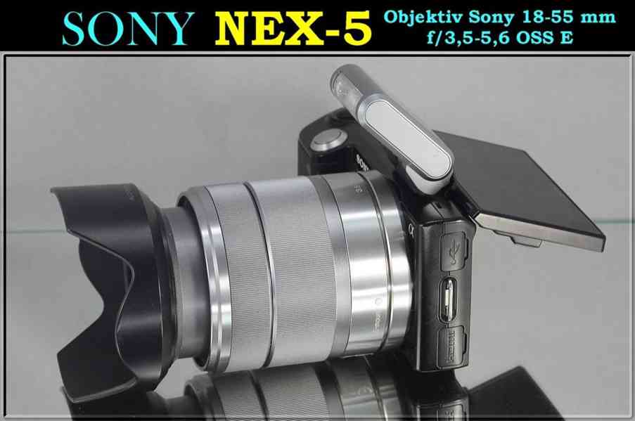 Sony NEX-5 je malý stylový fotoaparát s výměnnými objektivy. Má EXMOR CMOS snímač s rozlišeníM 14MPix, dokáže netáčet Full HD video, má výklopný 7.5cm LCD displej, tělo z hořčíku a celou řadu uživatelsky příjemných funkcí.