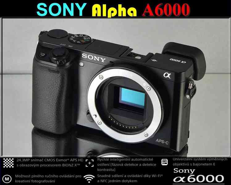 SONY A6000 je se svým vysokorychlostním Af zaostřováním, 24 Mpx APS-C CMOS snímačem, OLED Tru-Finder hledáčkem, manuálním ovládáním a řadou objektivů skvělou alternativou k zrcadlovkám. Fotografové říkají, že nejlepší fotoaparát je ten, který máte s sebou. Kompaktní a lehký model A6000 vychází ze srovnání s většími a těžšími DSLR lépe. Přesto nic neztratíte: nabízí vyměnitelné objektivy, manuální ovládání a další.