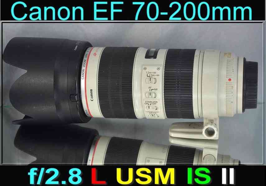 Canon EF 70-200mm f/2.8L USM je jeden z nejlepších teleobjektivů se zoomem řady EF srovnatelný s objektivy s pevnou ohniskovou vzdáleností. Teleobjektiv se zoomem Canon EF 70–200 mm f/2,8L IS II USM je spolehlivou zbraní profesionálních fotografů. Nabízí fluoritové členy pro lepší kvalitu obrazu, robustní odolné provedení a 4krokový stabilizátor obrazu. Základní objektiv pro fotografování sportovních událostí, volné přírody a portrétů.