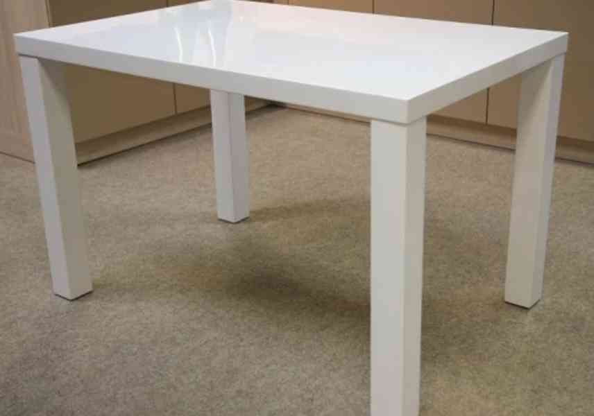 Prodám jídelní stůl s bílým vysocelesklým povrchem. Plocha desky: 150x90 cm.