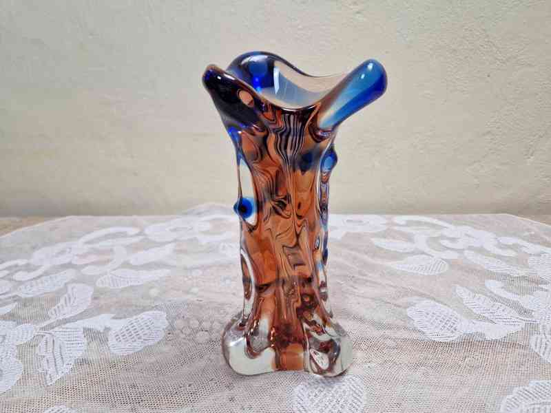 Zajímavá Autorská Váza, hutně tvarované sklo - František Zemek, Niagára? 2 pol. 20 stol.