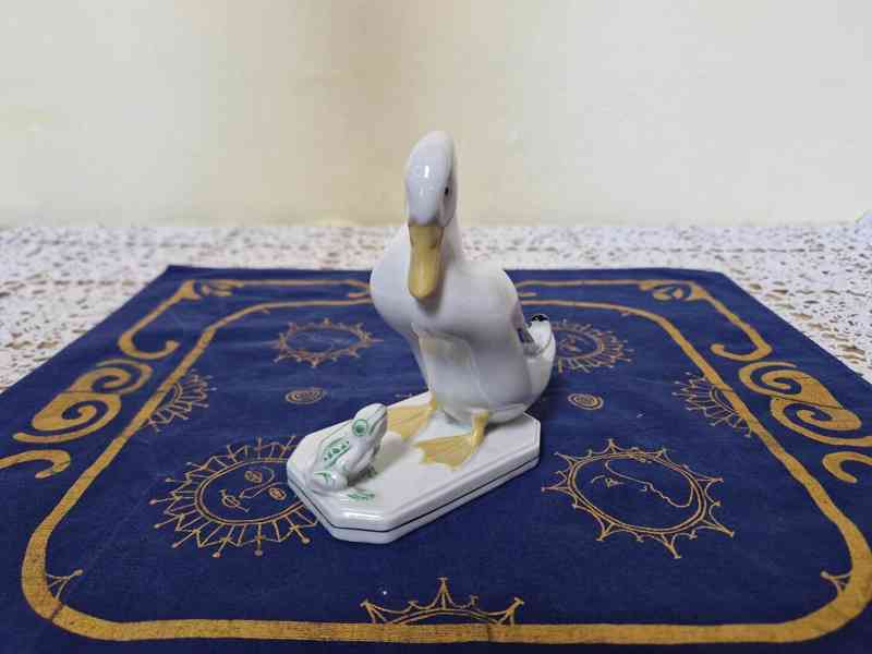 Hezká porcelánová plastika, Kachna s žábou - Horní Slavkov, 1 pol. 20 stol.