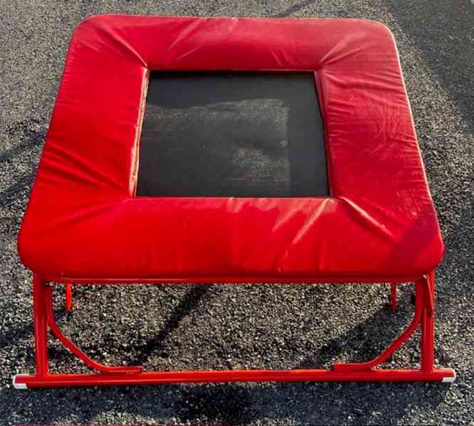 Gymnastická trampolína se čtvercovým tvarem s rozměry 110x110cm.