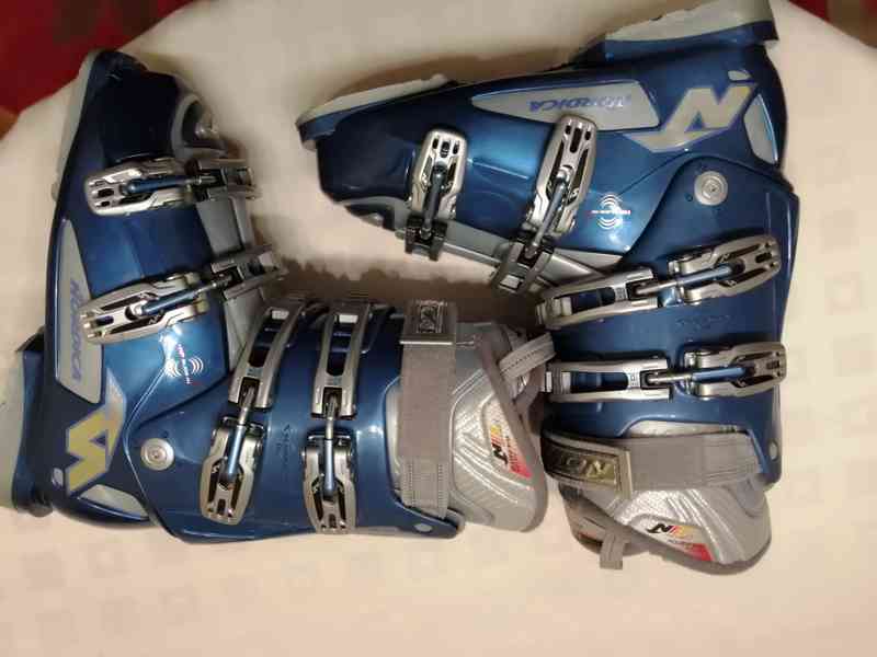 Prodám dámské lyžařské boty Nordica F6W pro začátečnice a mírně pokročilé lyžařky, skelet: Polyolefine ,HP SLIDE - IN , botička: 3D Comfort, přezky : 4 PC, 2 Micro, přepínání na chůzi Ski-Walk -mechanismus Ski/Walk zpříjemňuje výlet do hor, usnadňuje chůzi a snižuje únavu , tuhost (flex index) 55, velikost 26-26,5, 305 mm stélka, jako nové, původní cena 5.490,-Kč, nyní za 950,-Kč