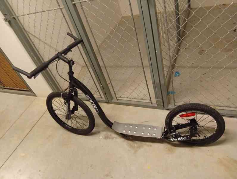 Prodám po dvou dětech koloběžku s nafukovacími koly, ježděná ale stále pěkná.