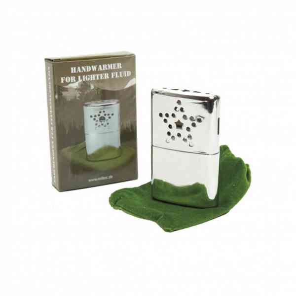 Benzínový kapesní ohříváček, pracuje na principu spalování výparů benzínu. Uložen v bavlněném pytlíku, který je možné vložit do kapes.