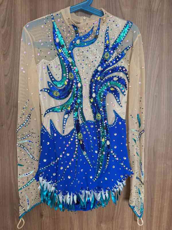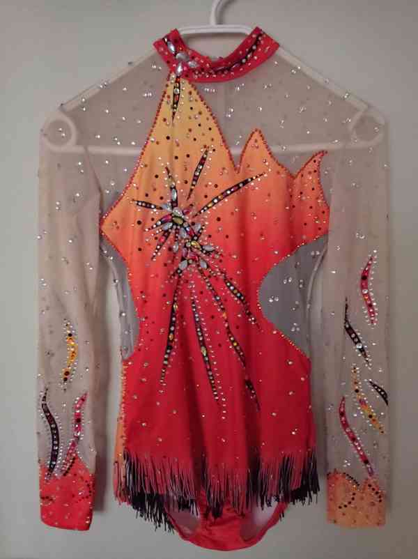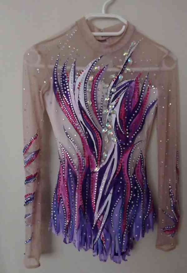 Dres na moderní gymnatisku upravený podle nových pravidel - podšitý vel. 134 - 139, rozměry viz foto včetně odzdoby do vlasů