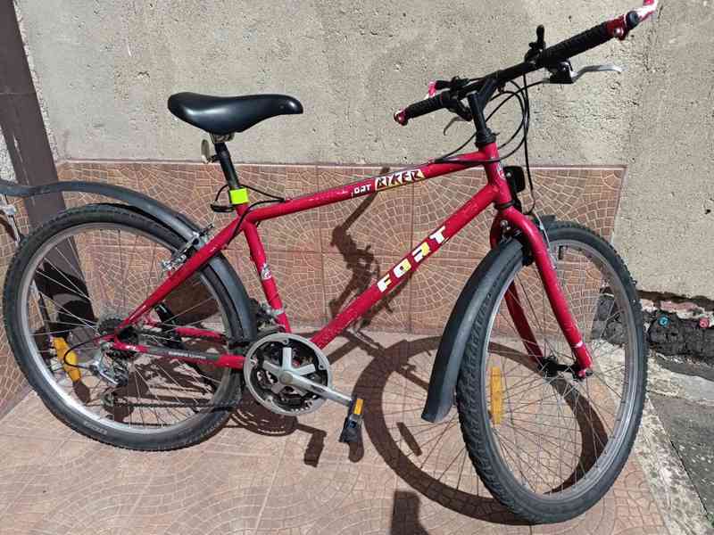 Prodám kolo Fort v zachovalém stavu. Přehazovačka Shimano 6 rychlostí, trojpřevodník, V-brzdy, blatníky, náhradní duše.