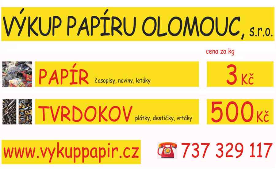 Výkup slinutých karbidů cena od 500 kč/kg , veškerého tvrdokovu, sk plátky, tk plátky, frézy, vrtáky. Výkup sběrového papíru: časopisy, noviny, letáky. 3 kč/kg