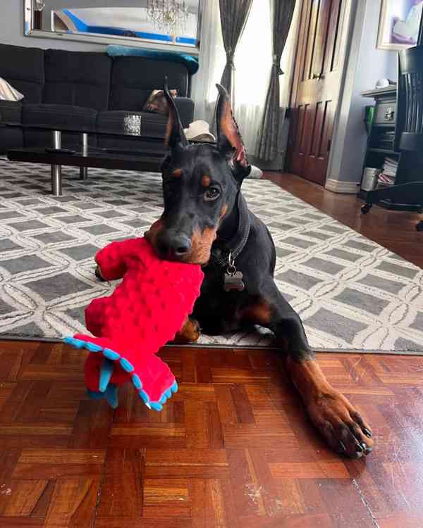 Pozdravte stálého suchozemského žraloka 🦈 Toto roztomilé štěně dobermana je naprostý blázen, miluje dlouhé zdřímnutí a všude nás následuje. Momentálně se učí základním způsobům chování a skvěle se mu daří s pobytem v kleci. Prioritou je najít perfektního partnera, u kterého může pokračovat ve výcviku a dostat spoustu denní aktivity. 🎾 Pokud si myslíte, že váš domov by mohl být tím správným dalším krokem, kontaktujte nás prosím e-mailem pro více informací.